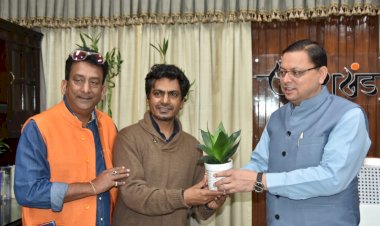 देहरादून: मुख्यमंत्री पुष्कर सिंह धामी से शनिवार को मुख्यमंत्री कैम्प कार्यालय में फिल्म अभिनेता नवाज़ुद्दीन सिद्दिकी ने भेंट की। नवाजुद्दीन सिद्दिकी उत्तराखण्ड में फिल्म की शूटिंग कर रहे हैं। रोतु की बेली, चंबा, मसूरी एवं देहरादून में उनके द्वारा फिल्मांकन किया गया। उन्होंने कहा कि फिल्मों की शूटिंग के लिए उत्तराखण्ड में बहुत अच्छा वातावरण है। उत्तराखण्ड का नैसर्गिक सौन्दर्य फिल्मांकन के लिए लोगों को आकर्षित कर रहा है।