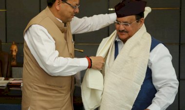 नई दिल्ली: मुख्यमंत्री पुष्कर सिंह धामी ने शुक्रवार को नई दिल्ली में भारतीय जनता पार्टी के राष्ट्रीय अध्यक्ष जे. पी नड्डा से शिष्टाचार भेंट की और जन्म दिवस की शुभकामना दी। इस अवसर पर मुख्यमंत्री ने भाजपा के राष्ट्रीय अध्यक्ष को कंडाली से निर्मित शॉल एवं पहाड़ी टोपी भेंट की।