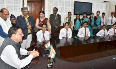 देहरादून: मुख्यमंत्री श्री पुष्कर सिंह धामी से शनिवार को मुख्यमंत्री आवास स्थित केम्प कार्यालय में देहरादून भ्रमण पर आये बाल शिक्षा सदन स्कूल बड़कोट के छात्रों ने भेंट की। मुख्यमंत्री से मिलने आये छात्र मुख्यमंत्री से मिलकर उत्साहित नजर आये।